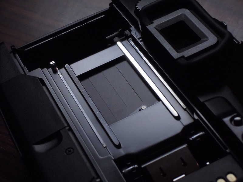 However, this process leaves shiny rail surfaces inside the matte black film chamber, causing unwanted reflections.